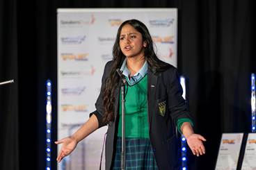 For the third year in a row, a student from Wallington High School for Girls won the Regional Finals! Sophia (12JSR) won in 2024 and this year Senuli (10PAN) won the Sutton Regional Finals; this is an exceptional achievement and a testament to her talent, dedication and confidence. Her speech on the voice of self-doubt was thoughtful, inspiring, and delivered with real impact. We are incredibly proud that two of our students represented our school at the Regional Finals this year – Mishka (10SEA) and Senuli (10PAN). To reach this stage of the competition is a remarkable accomplishment in itself, and both students performed with confidence, passion, and professionalism. A special mention to the MC for the evening who was last year’s winner – Estela (11JOH). She did an incredible job introducing each speaker to the stage.
